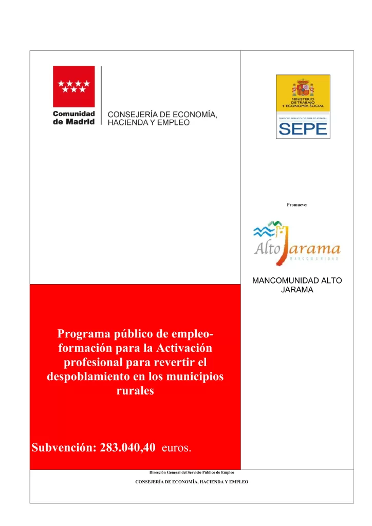 La semana pasada la Mancomunidad Alto Jarama, de la que el municipio de Torremocha de Jarama forma parte, contrató a 10 trabajadores (5 albañiles y 5 jardineros) al amparo de una ayuda concedida por la Comunidad de Madrid con el programa público de empleo formación para la activación profesional en municipios rurales. Estas personas estarán trabajando en los 4 municipios de la Mancomunidad durante 12 meses