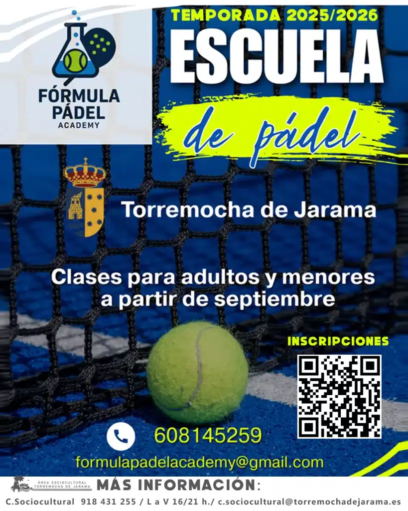 🎾🧪 ¡Nueva temporada de la Escuela de Pádel en Torremocha de Jarama!Prepárate para la Temporada 2025/2026 con Fórmula Pádel Academy 🧠💥 🗓️ Inicio: Septiembre👨👩👧👦 Clases para adultos y menores🏟️ Lugar: Torremocha de Jarama 📲 Inscripciones abiertas📌 Escanea el código QR del cartel o contáctanos:📞 608 145 259✉️ formulapadelacademy@gmail.com 🌀 Mejora tu técnica⚡ Potencia tu juego🤝 […]