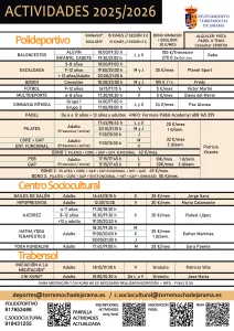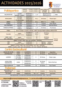 – Para darse de alta como usuario de las actividades culturales y deportivas será necesario el pago obligatorio de una única matrícula de 10€.